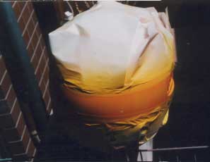 仕上げクリアーには「ガソリンにも溶けない」という事なので、2液性のウレタンクリアー(soft99ボディーペンウレタンクリアー)を使用した。2液性なので液を一度混ぜてしまうと硬化が始まってしまうので、塗りと乾燥を繰り返し1時間位かけ1本全部使い切った。とても素人の仕事とは思えないほどのツヤがでた。しかし、完璧を求めるのならもう一段階必要だ、クリアーを2日程度乾燥させ、全体にサンドペーパーをかけ、表面を平らにする。せっかくのツヤを消すのはもったいない気がするのだが・・・#1200から水研ぎをはじめ#2000で仕上げる。 |