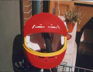 シールドをミラースモークに交換し、カッティングシートでお化粧、完璧の出来だ。自分で仕上げただけに他人にはわからない満足感と愛着が沸いてくる。 |