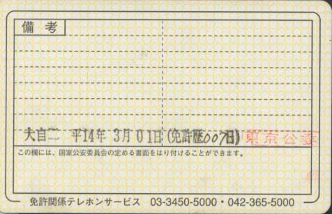 試験に合格すればその日のうちに免許が交付され念願の大型二輪免許が手に入る。![]() 意味はわからないが、普通二輪取得後7日目で大型二輪を取得したので、免許暦007日のスタンプが押された。 これで、1回で合格した証拠になる。