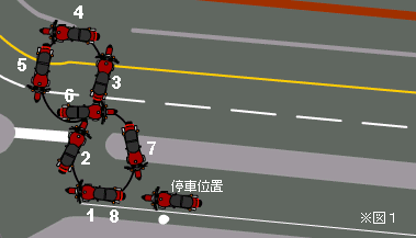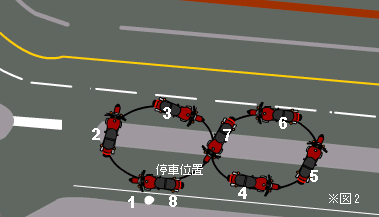 大型二輪の試験前には事前審査が行われる。審査は引き起こしと8の字に押し回しが出来るかを見る。以前はセンタースタンドがけがあったらしいが現在は除外されている。 まず最初に8の字に押し回しを行った(※図1)が、押し回しが終わって停車位置にバイクを戻した途端試験官が 「何やってんだよ!もう帰れ!」 と怒鳴りだした。何を間違えたのかわからないが試験官の罵声で完璧頭にに来た私は無言でその場を去ろうと支度していたら、突然試験官が「見ていろ!」と、言って自分でバイクの押し回しを始めた(※図2)、「なぜこう出来ないんだ」と言い出した。 ![]() ![]() 確かに私が押し回した位置ではバイクを停車位置に戻すには一度バックさせなければならないのだが、事前審査の趣旨を考えたら何の問題も無いはずである、それならばなぜ、はじめから順路を説明しないのだろうか。 こんな理不尽がまかり通るこの国の公安委員会の体質は大問題である。文句の1つでも言いたかったのだが、ここはグッと堪えた。 結局やり直しすることもなく審査は通過した。 |
