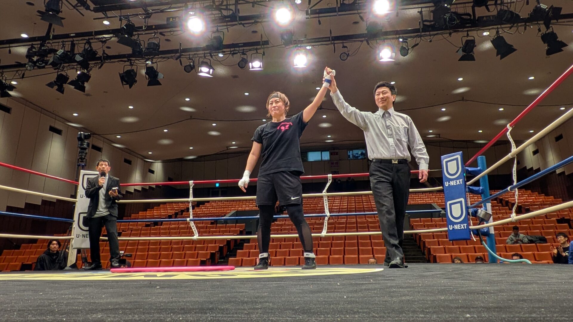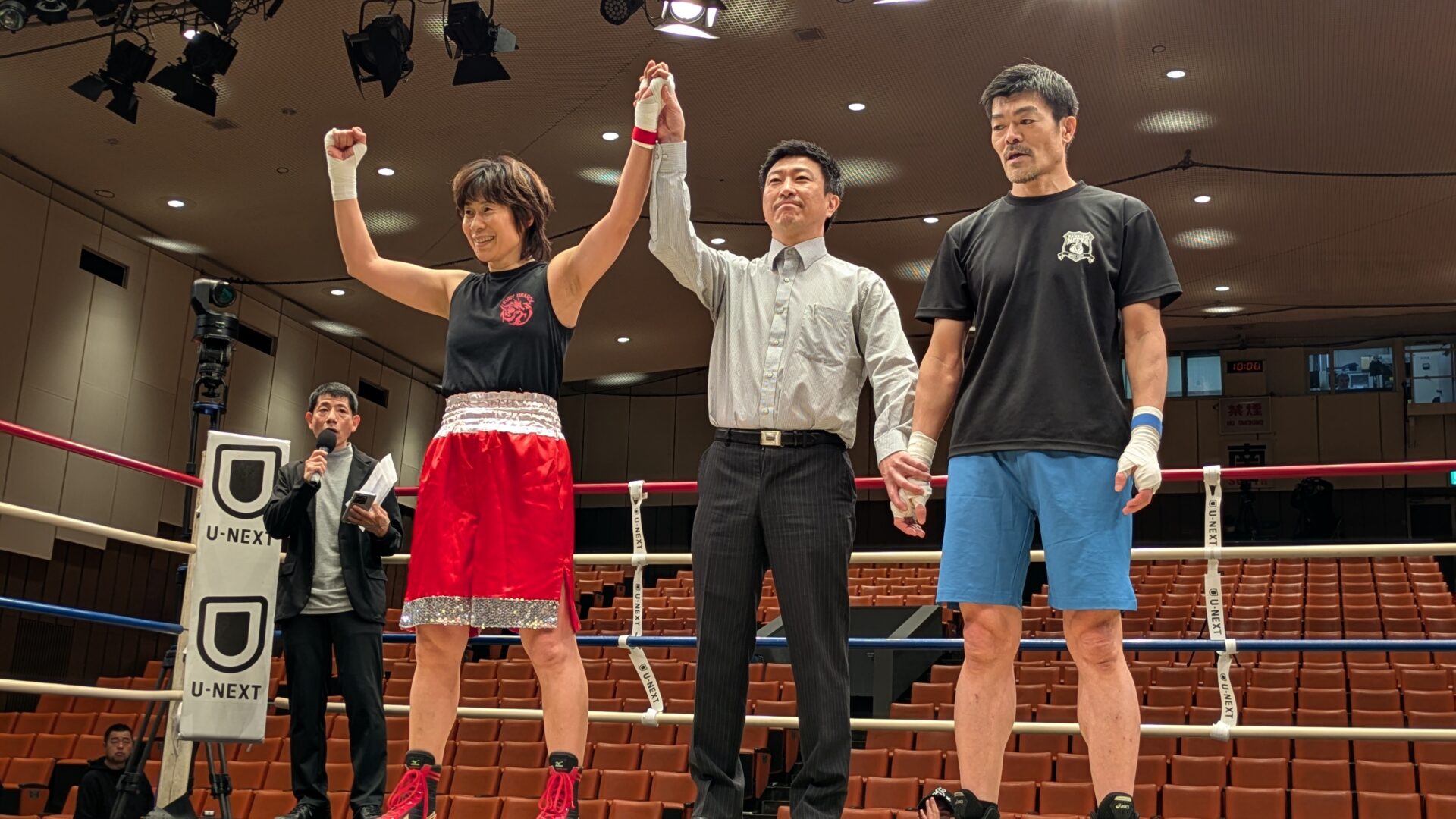 試合結果:3対0 勝者赤コーナー、ジャンボIKUKO選手