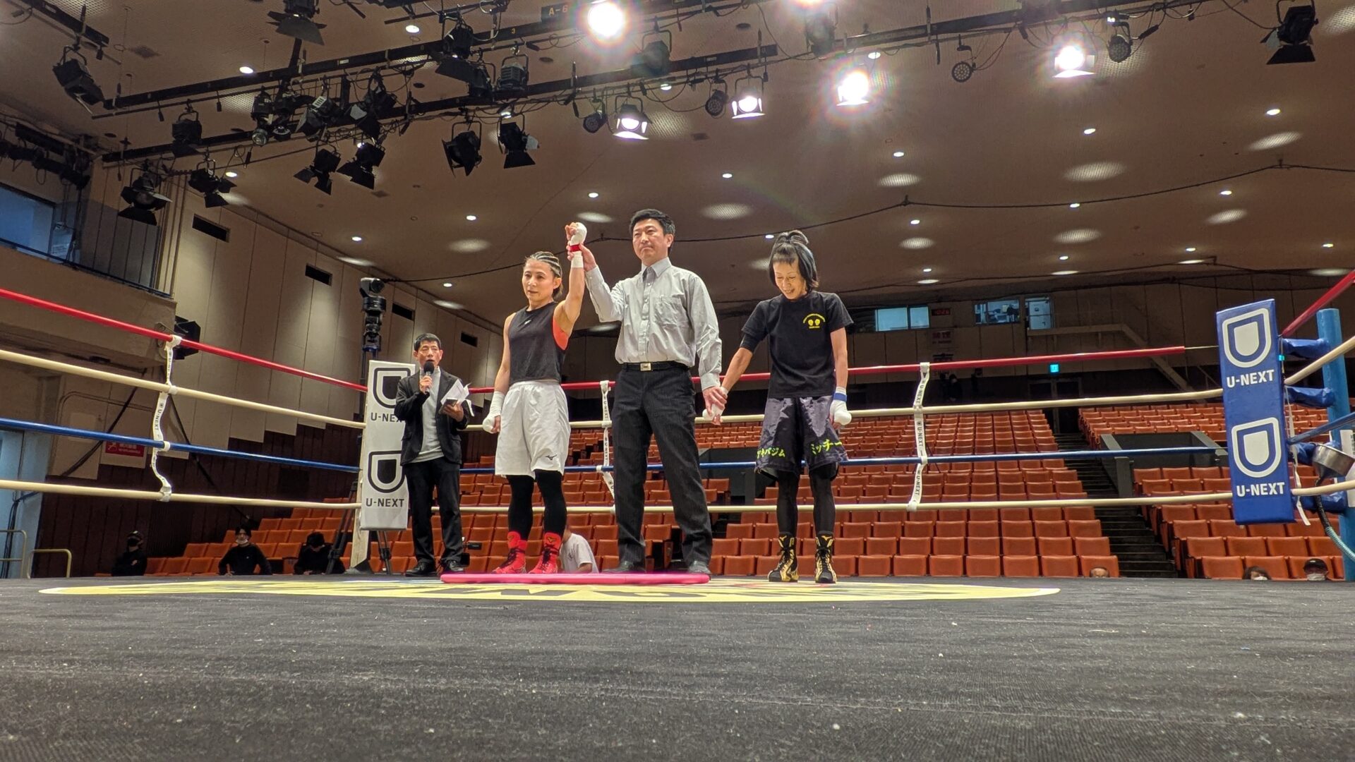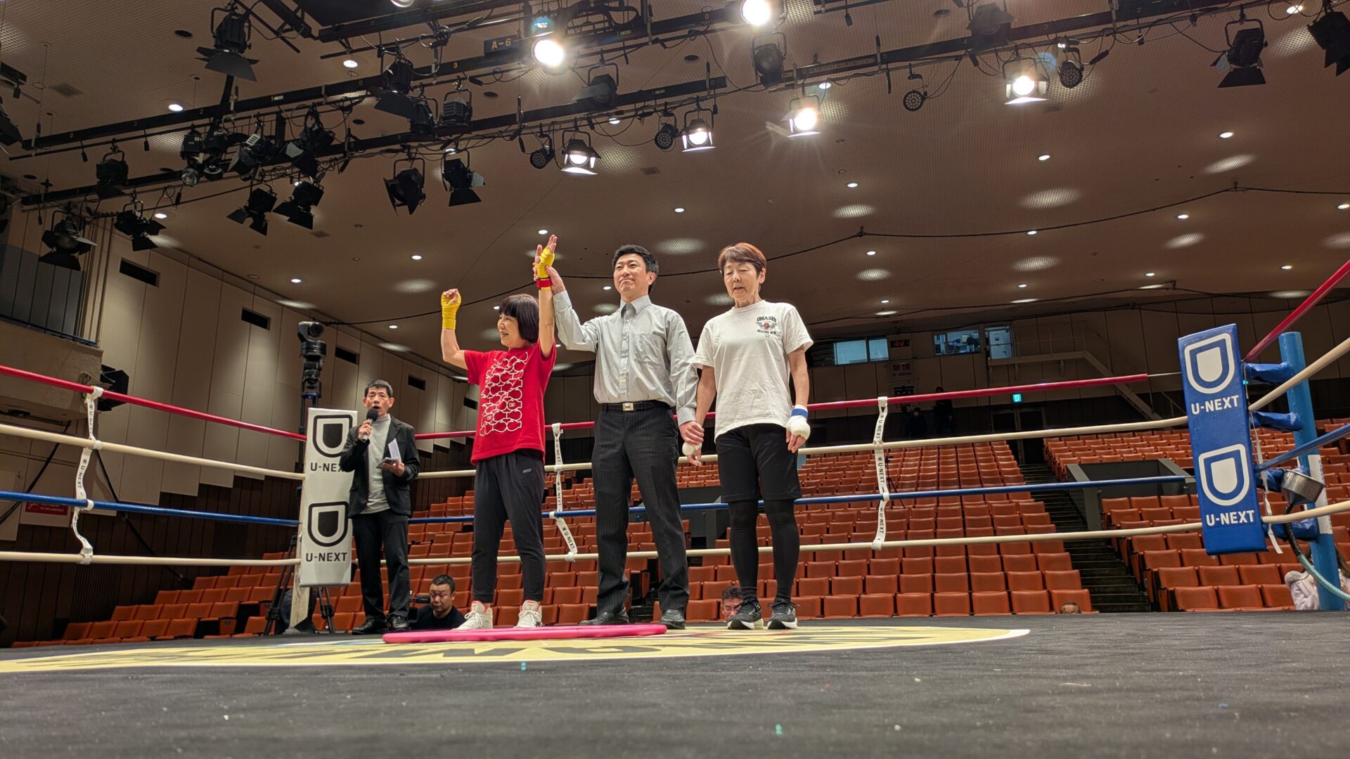試合結果:3対0 勝者赤コーナー、ジャンボIKUKO選手