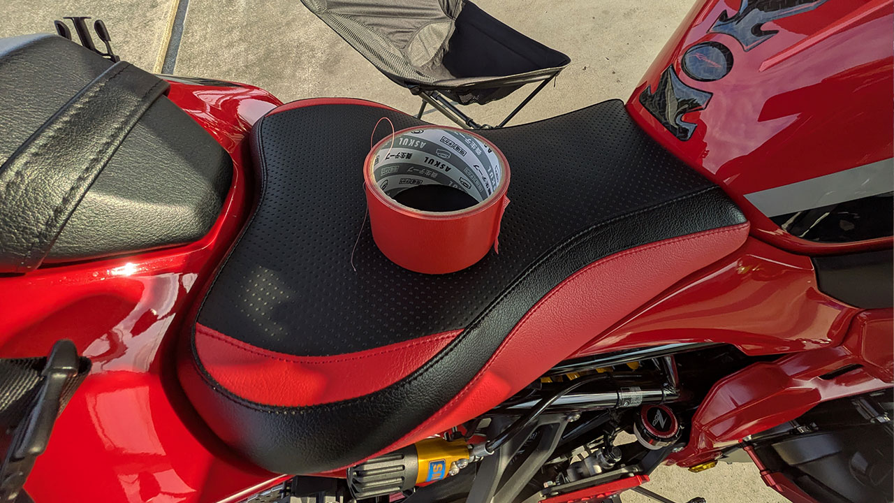 ライト、ウィンカー、バックミラーなどにテーピングを施すのがサーキット走行のルール