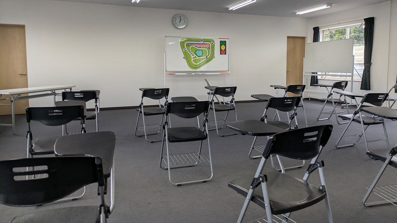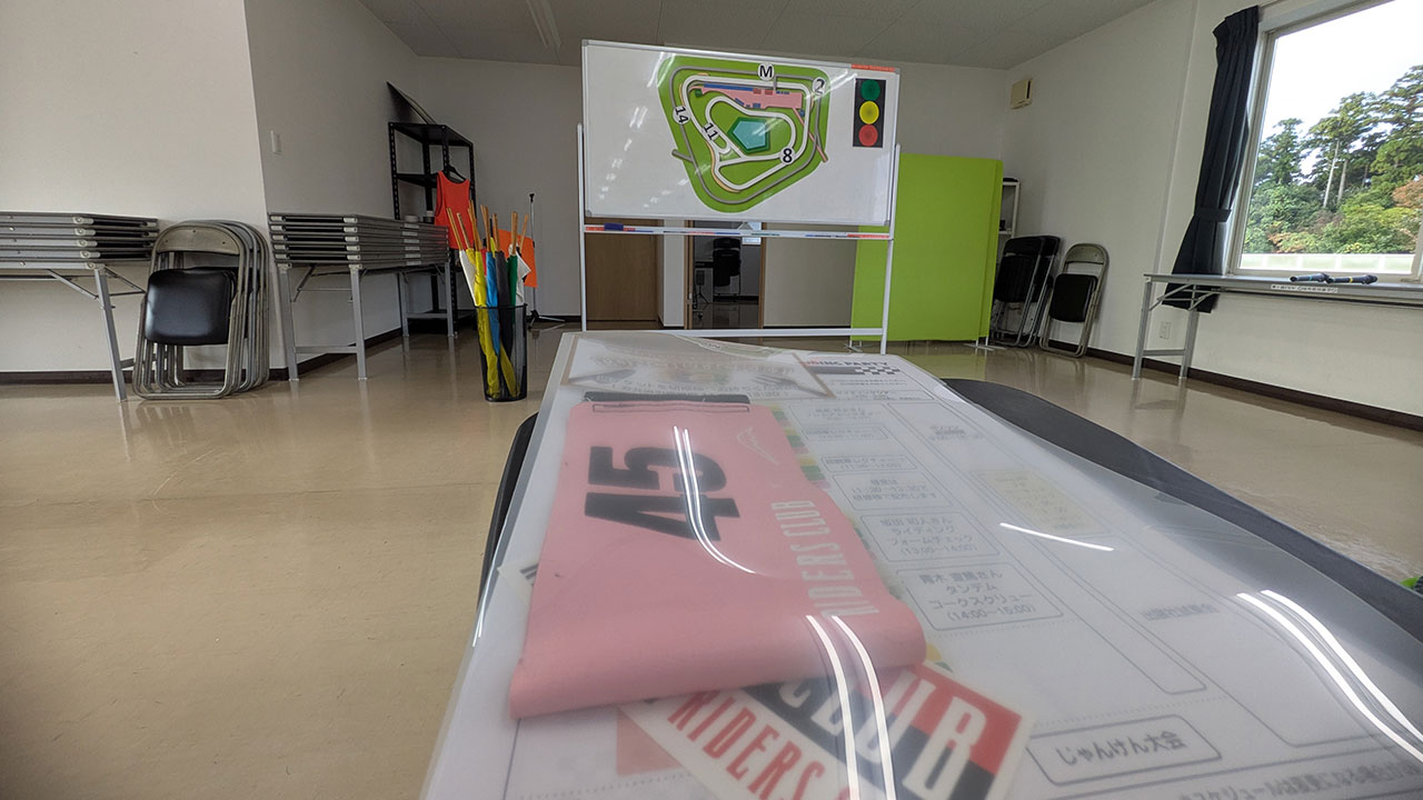 ブリーフィングルームで旗やローカルルールの説明と出展各社の挨拶で約1時間程度