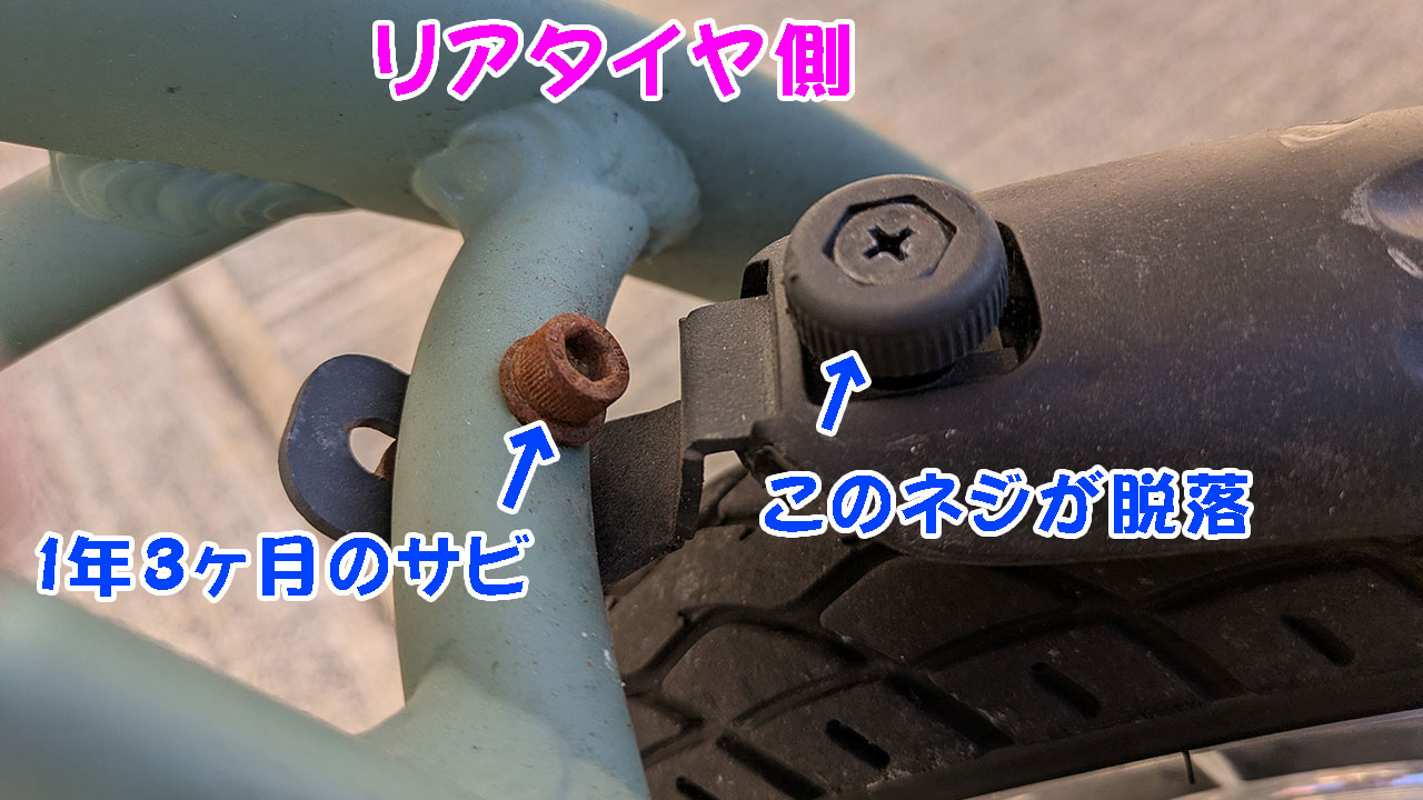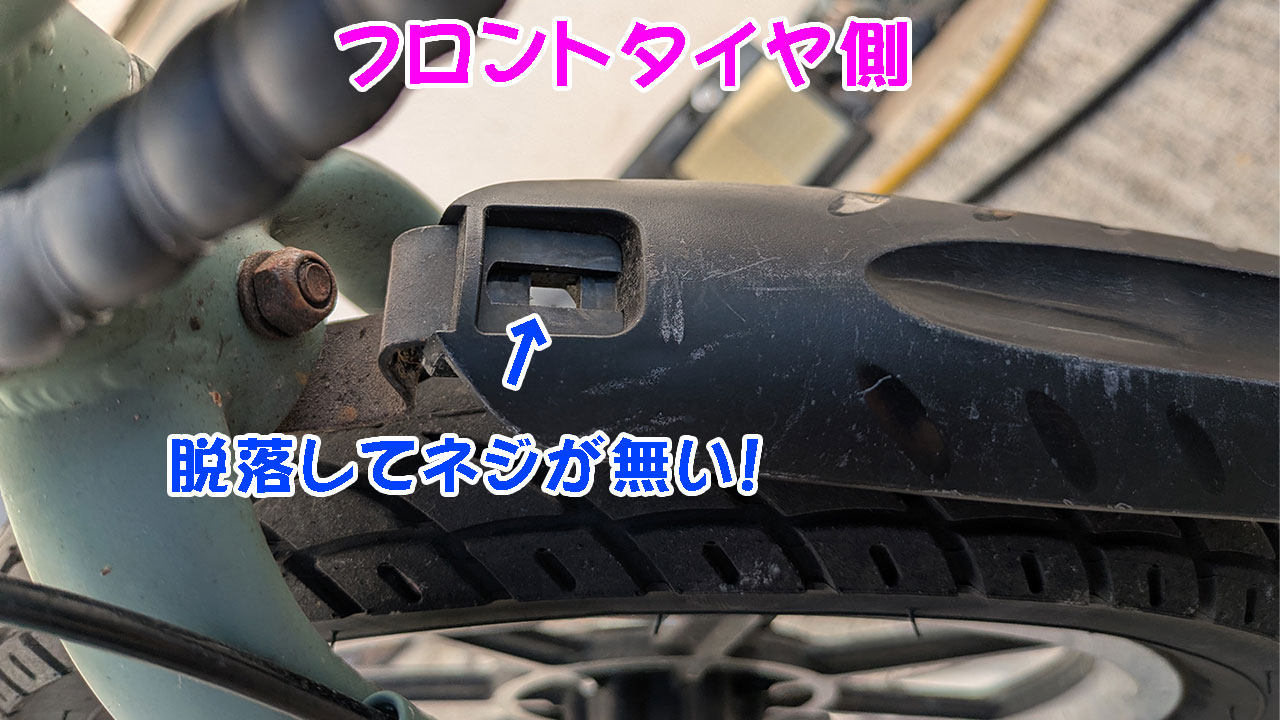 泥除けは1本のネジで取り付けられており、そのネジが緩んで外れてしまったらしい