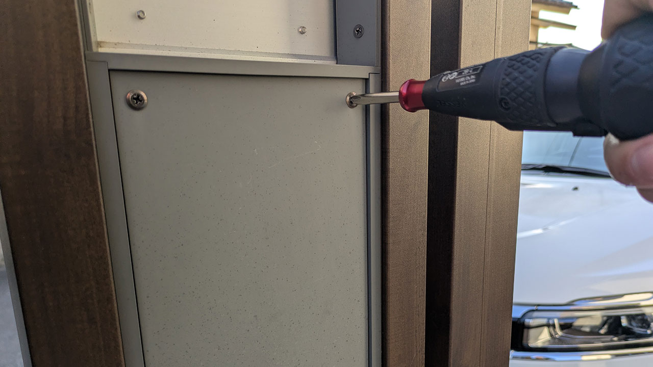 裏ブタを開け、インターホン本体を取り出したら、続きの作業は室内で