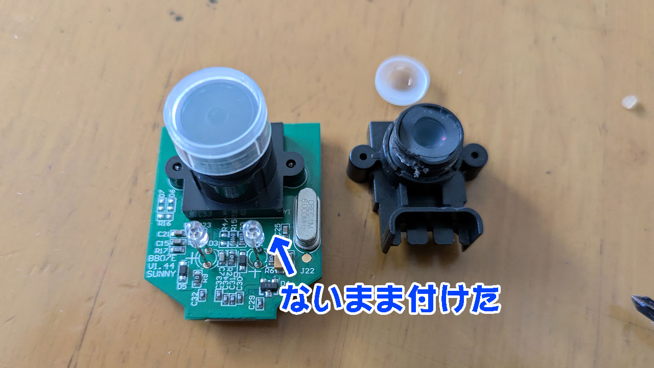 おそらく夜間LED照明が点灯した時のフレアを防ぐためのパーツだと思うが、ここで四の五の言っても仕方ないのでそのまま付けてみる、と言うか、付けるしか選択肢はない